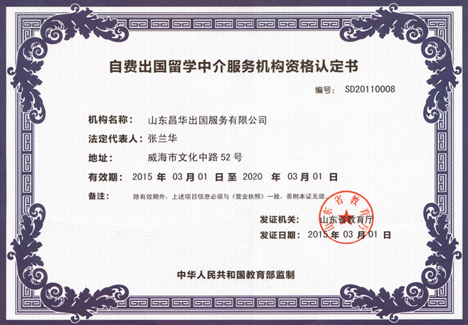 教育部授權(quán):威海出國(guó)留學(xué)機(jī)構(gòu) | 煙臺(tái)出國(guó)留學(xué)機(jī)構(gòu) | 山東昌華出國(guó)服務(wù)有限公司